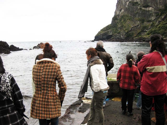 爬完城山日出峰之後下來到側邊的小海灣,這個小海灣就是海女表演徒手抓海鮮的地方